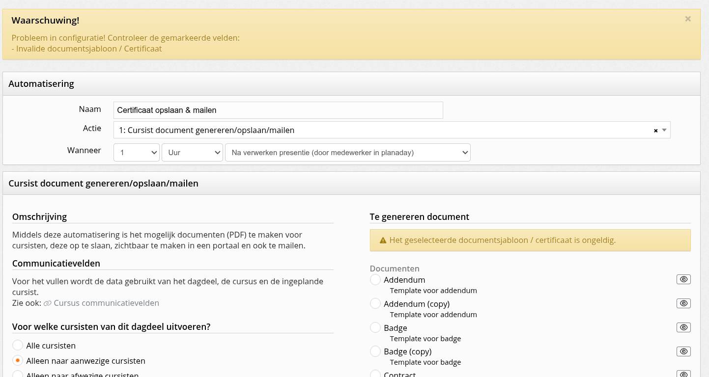 Hoe graag we ook voorkomen dat de automatiseringen mislopen, is dat helaas niet altijd mogelijk. Daarom zitten we ook nog aan het volgende te denken: een wekelijks rapport genereren wat gemaild kan worden met daarin een overzicht van automatiseringen bij cursussjablonen of ingeplande cursussen in de toekomst die een probleem hebben zodat je tijdig actie kunt ondernemen en daardoor problemen kunt voor zijn!