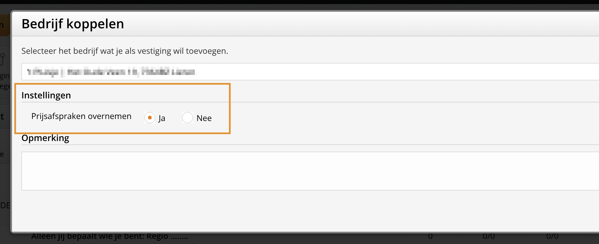 De prijsafspraken worden dan gekopieerd naar het onderliggende (gekoppelde) bedrijf, zodat je ze daar nog wel kunt aanpassen.