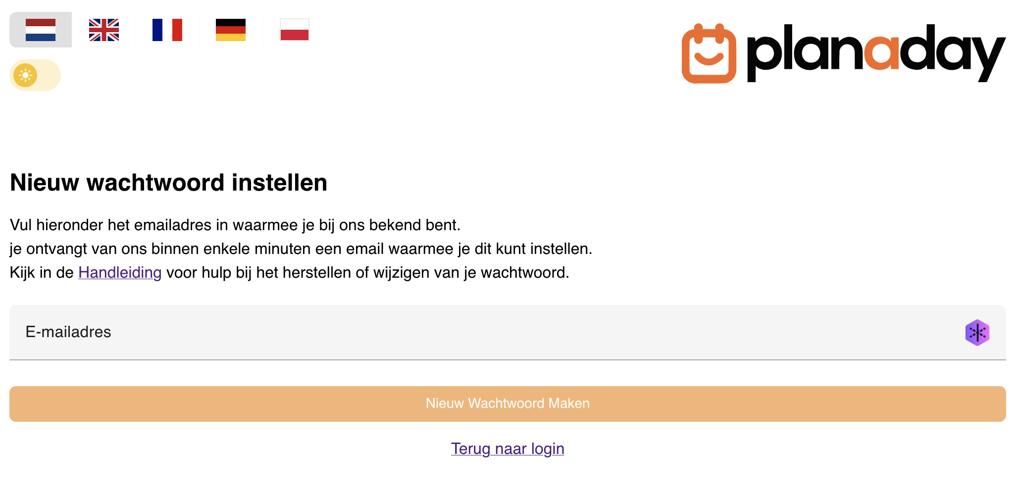 Op de speciale wachtwoord reset pagina is de tekst ook verduidelijkt wanneer de gebruiker vanuit de melding komt.