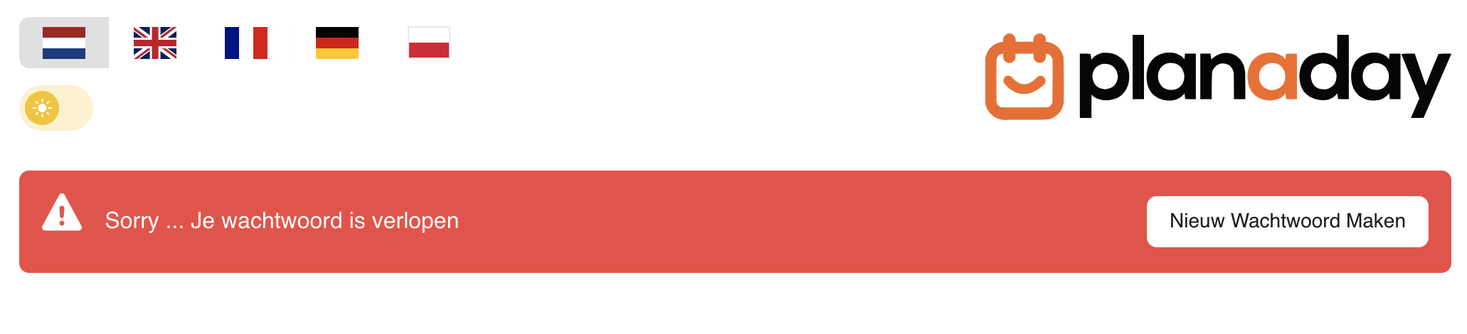 In de laatste versie van het portaal is een knop toegevoegd in de ‘wachtwoord verlopen’ melding die gebruikers naar een pagina stuurt waar ze hun wachtwoord kunnen resetten.