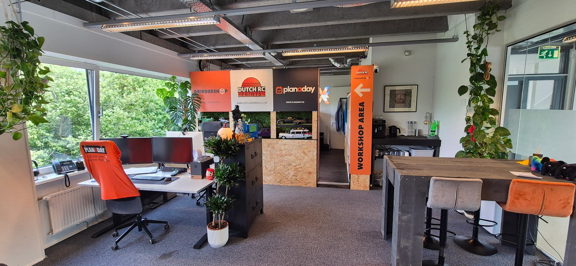 Ons nieuwe plekje in De Burgemeester in Hoofddorp voelt nu al als thuis. Grote ramen, veel licht, een frisse start én ruimte voor groei. Ook de bedrijven van Stefan’s zoon (dutchrcprints.com en driedeeshop.nl) zijn met hun werkplaats meeverhuisd, dus het is een gezellige drukte hier.